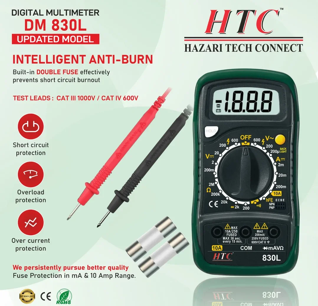 This multimeter is ideal for a wide range of users—from professionals engaged in industrial maintenance and electrical installations to students learning the basics of electronics. Whether you need to troubleshoot household circuits, test automotive electrical systems, or work with electronic components, the DM-830L Digital Multimeter provides the reliability, precision, and safety required for all your testing needs.
