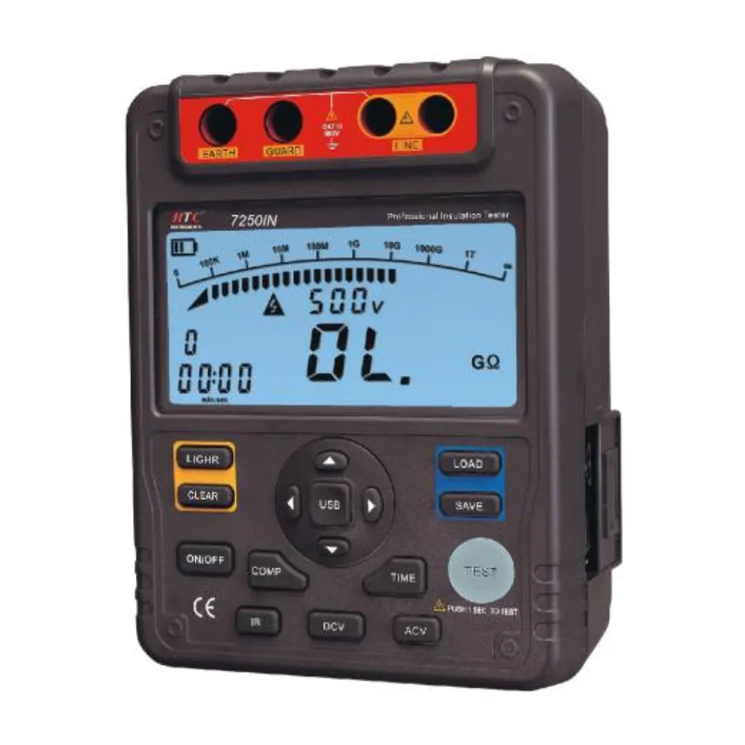 The HTC 7250IN Insulation Resistance Tester is a professional-grade diagnostic instrument uniquely engineered for high-voltage insulation testing up to 5 kV and resistance measurement as high as 1,000 GΩ. Designed to meet the demands of maintenance engineers, safety inspectors, and utility technicians, it offers unparalleled precision, versatility, and reliability in assessing insulation health across industrial, commercial, and critical infrastructure deployments.