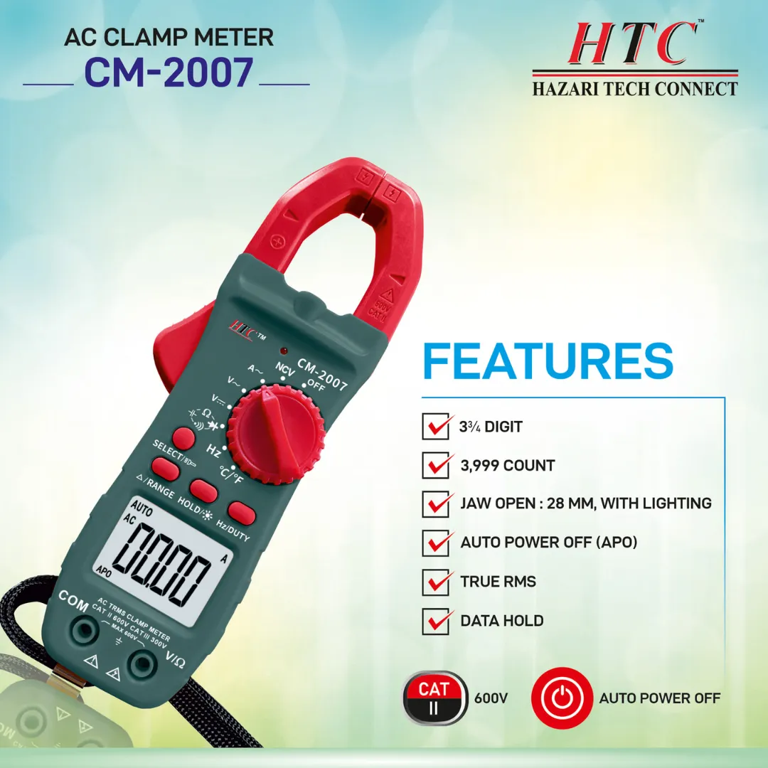 The HTC CM‑2007 600A AC Clamp Meter is the perfect solution for anyone seeking a versatile and high-accuracy testing instrument. Its combination of True RMS accuracy, NCV detection, backlight display, clamp torch, temperature measurement, and multi-function capability makes it an essential tool for modern electrical diagnostics.