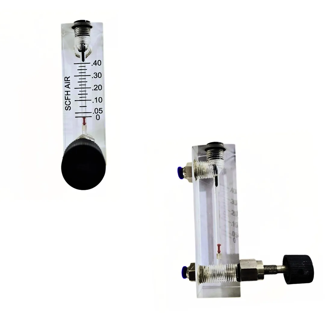 Acrylic Tube Rotameter for Air Flow meter, Range 0 to 0.40 SCFH, 4 MM ID Push Fit Connection SS at Rear Top & Bottom Inlet and outlet, Control Valve Provided at Inlet