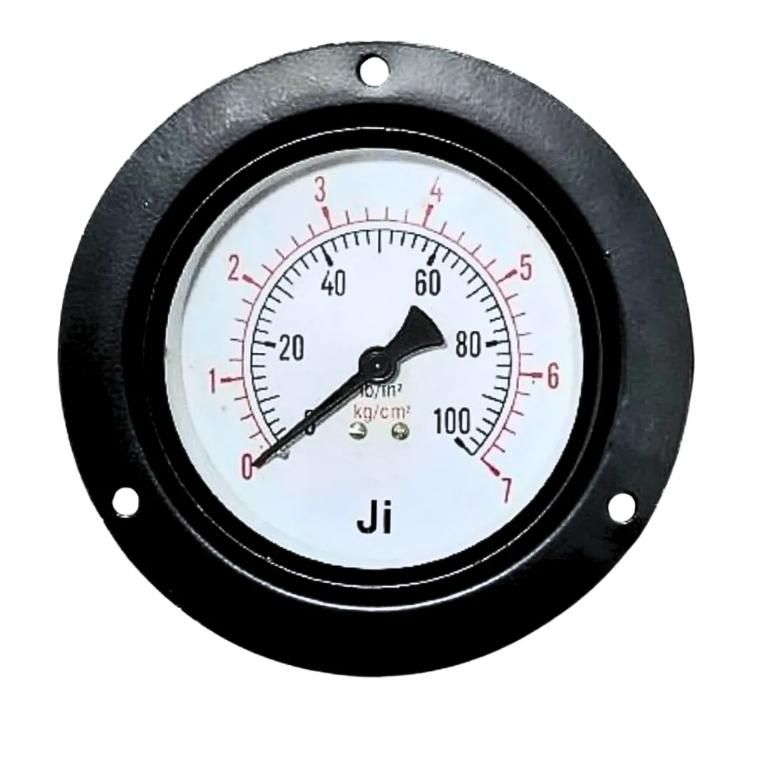 Commercial Pressure Gauge, Dial Size 4″ (100 mm), Range 0 to 7 Kg/Cm2 Dual Scale of 100 PSI, Panel Mounting Back Entry, 3/8″ BSP (M) Connection, MS Case & Brass Internals, Accuracy 2% FSD
