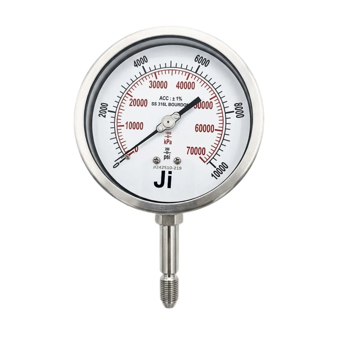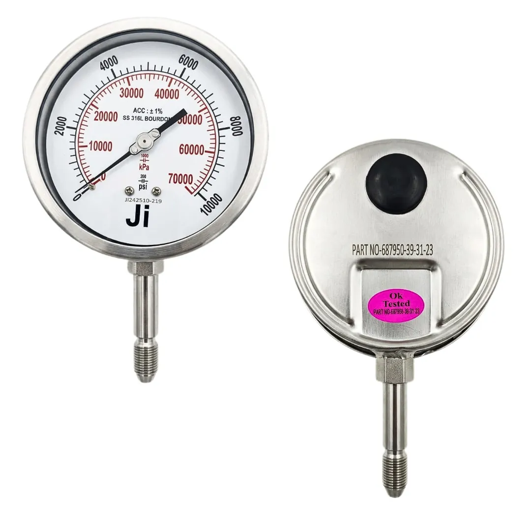The “Ji” Japsin Instrumentation Industrial Pressure Gauge for Oil & Gas is a precision-engineered, heavy-duty pressure measurement instrument specifically designed for high-pressure applications up to 10,000 PSI (70000 kPa). Built to perform in extreme environments, this gauge is ideal for oilfield operations, hydraulic systems, drilling rigs, offshore platforms, and high-pressure industrial processes.