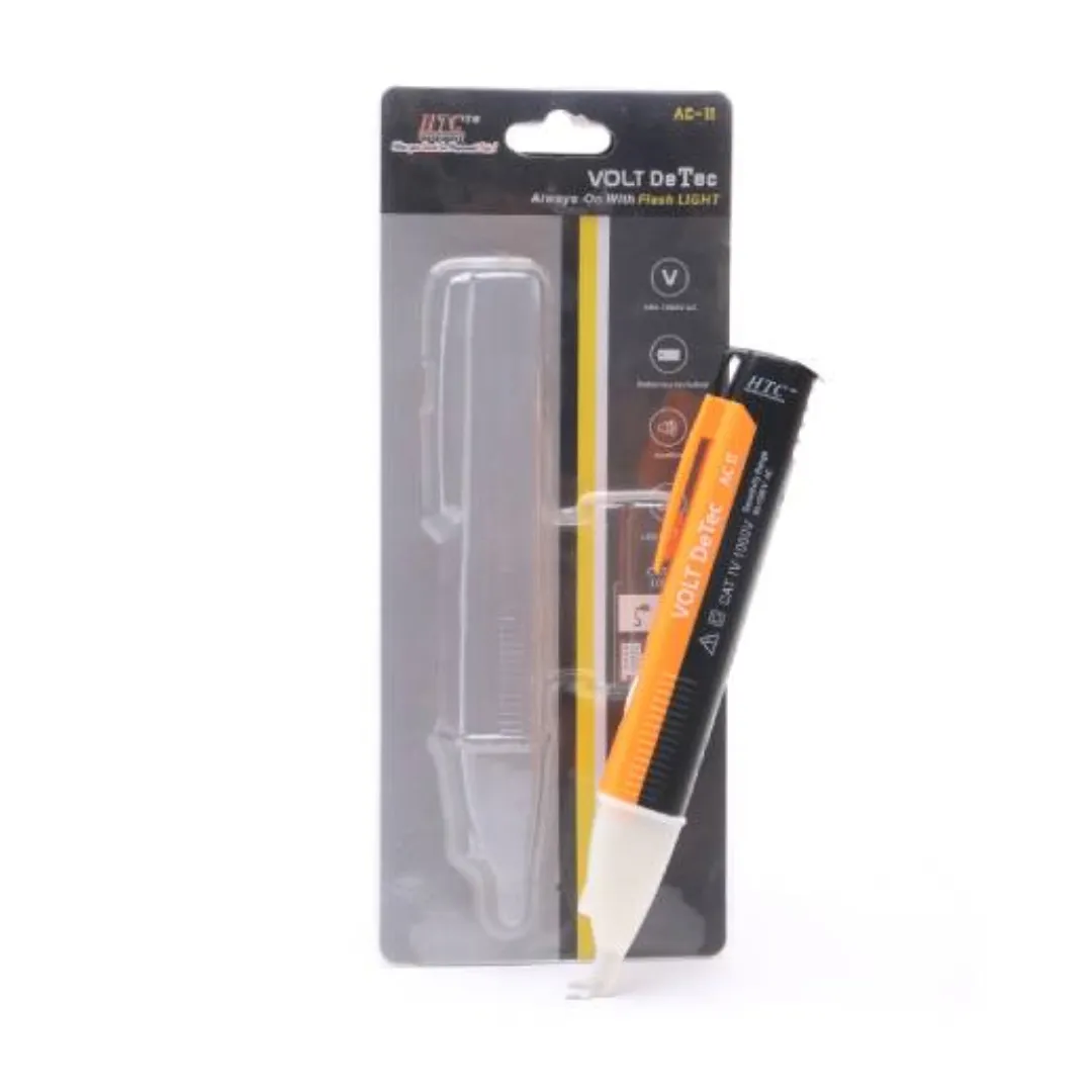 In summary, the HTC AC‑II Non‑Contact Voltage Detector is a compact, practical tool that blends reliability, safety, and ease-of-use into one pen‑style device. Its wide detection range, clear visual/audible indicators, LED torch, and robust safety certification (CAT IV 1000 V) make it invaluable for professional and everyday electrical diagnostics. Whether verifying non-energized circuits before maintenance or quickly checking wiring in limited-access spaces, the AC‑II ensures fast, dependable results with minimal setup and maximum safety.